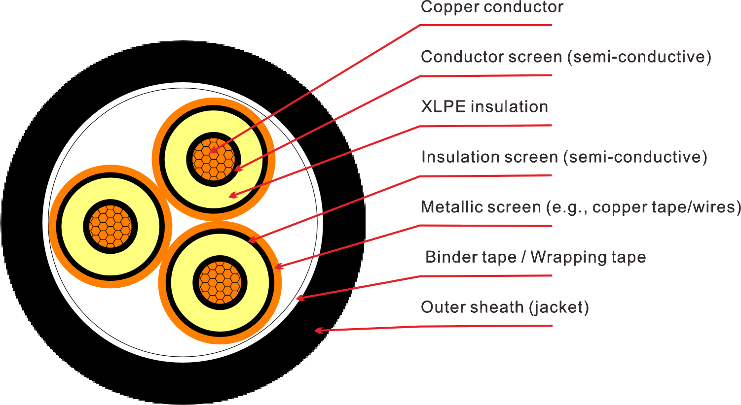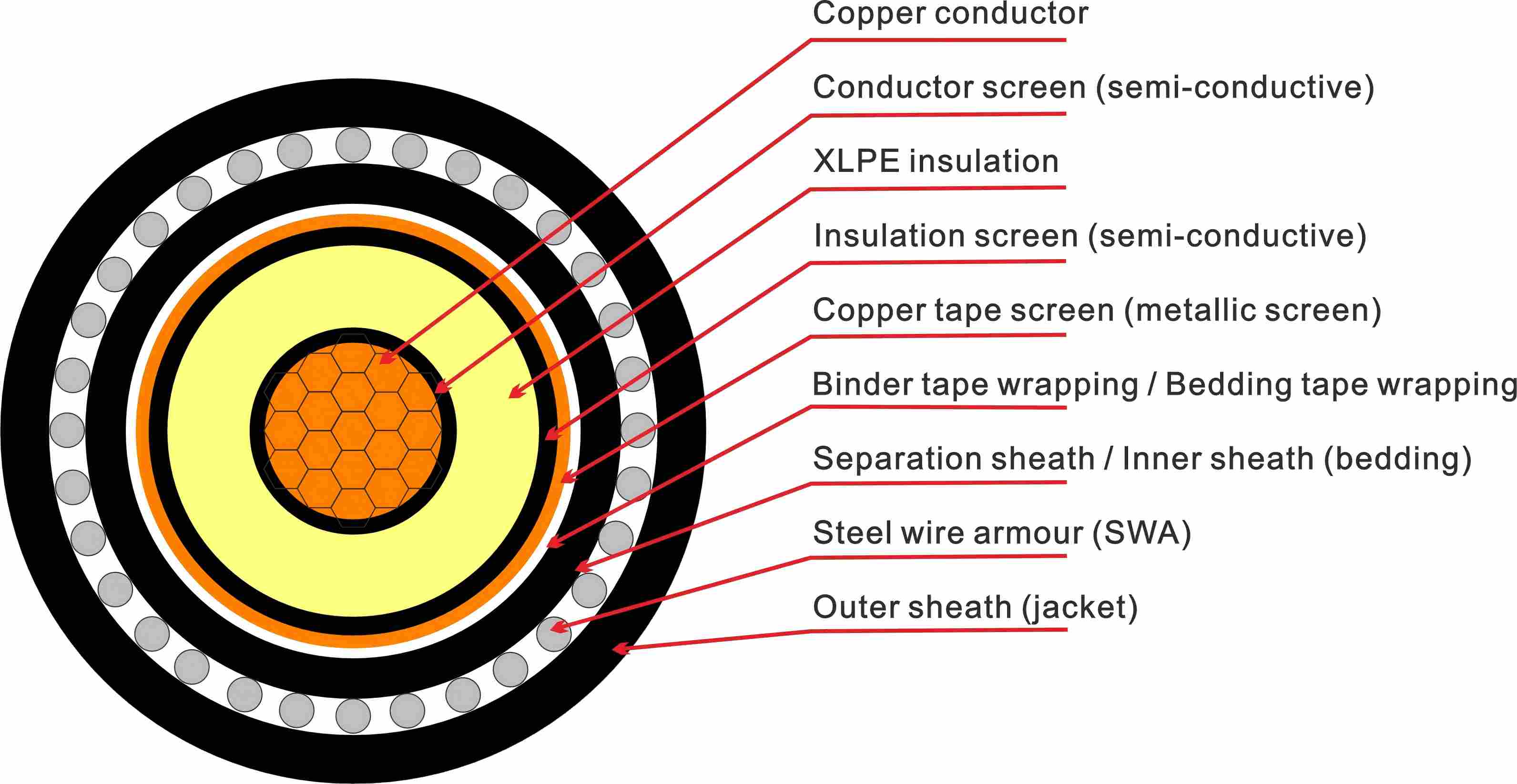 البناء النموذجي (أحادي النواة، XLPE، محمي، مدرع)