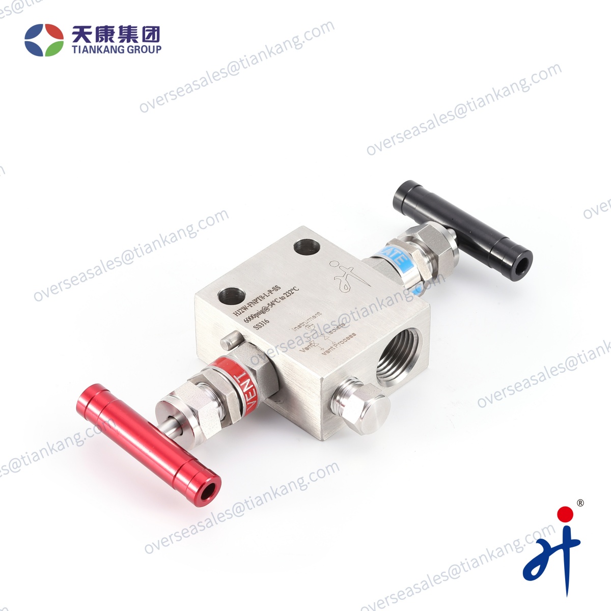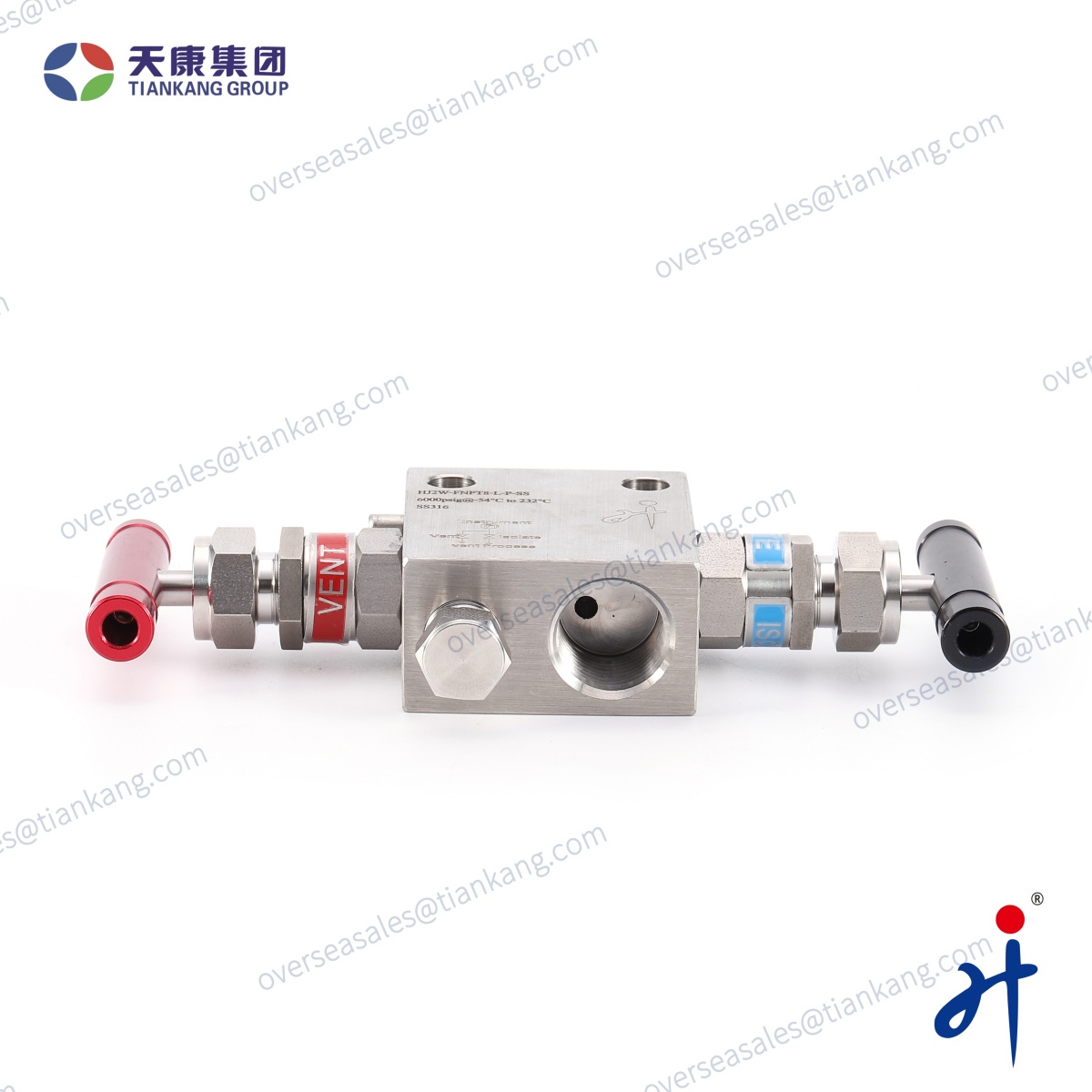 مشعب تيانكانغ هونغجي ثنائي الصمامات (صمامات مثبتة على خط واحد)، من إنتاج شركة هونغجي لتصنيع الأجهزة والصمامات المحدودة، يجمع عدة صمامات في هيكل واحد مع توصيلات متعددة. يساعد هذا الجهاز أجهزة الضغط، مثل مقاييس الضغط، ومحولات الضغط، ومحولات الضغط التفاضلي، بشكل مباشر وغير مباشر في قياس ومعادلة الضغوط، سواءً كانت تفاضلية أو ثابتة أو متغيرة، في خطوط أجهزة المعالجة، عن طريق التفريغ والحجب والمعايرة.