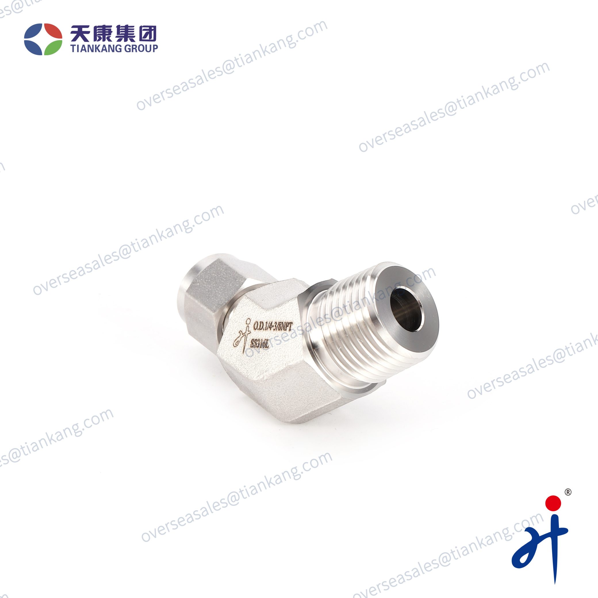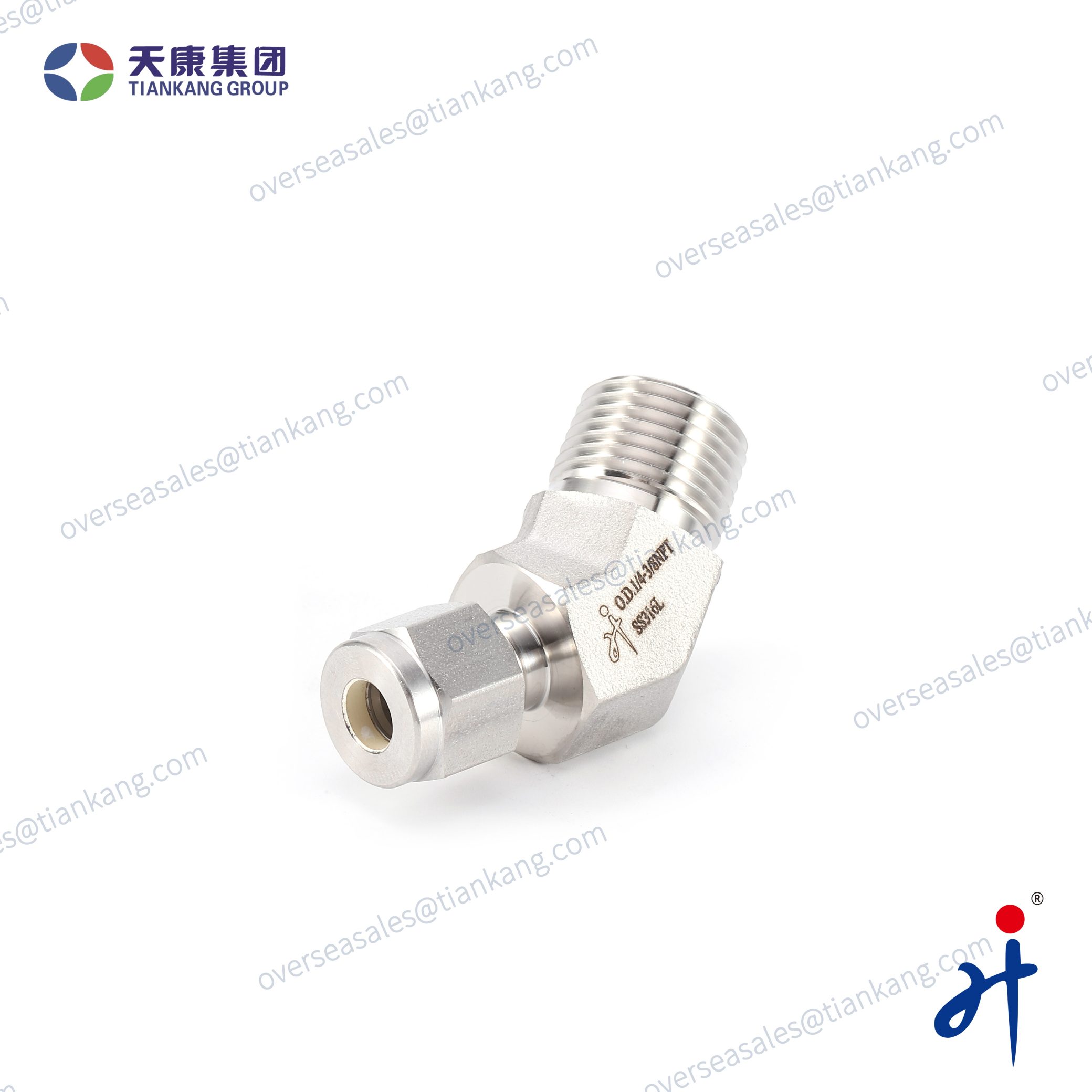 يعتمد تصميم وصلات أنابيب الكوع الذكورية تيانكانغ هونغجي، المصنوعة من الفولاذ المقاوم للصدأ بزاوية 45 درجة، على تقنية هونغجي الفريدة، مما يضمن إحكامًا آمنًا وموثوقًا، مع سهولة التركيب والفك. تُستخدم هذه الوصلات غالبًا في بيئات عالية الضغط ودرجات الحرارة، مثل الصناعات الكيميائية والبترولية والغاز الطبيعي.