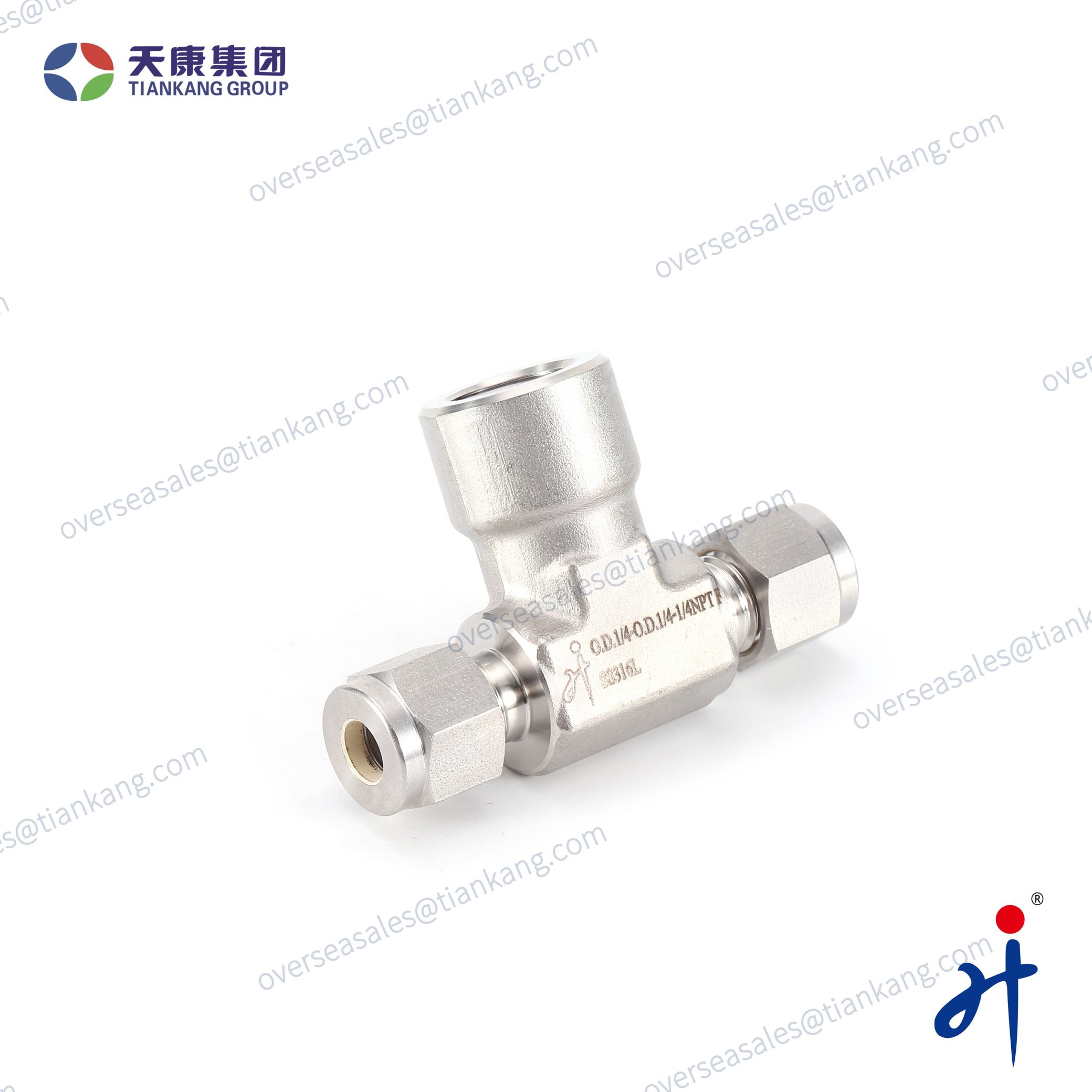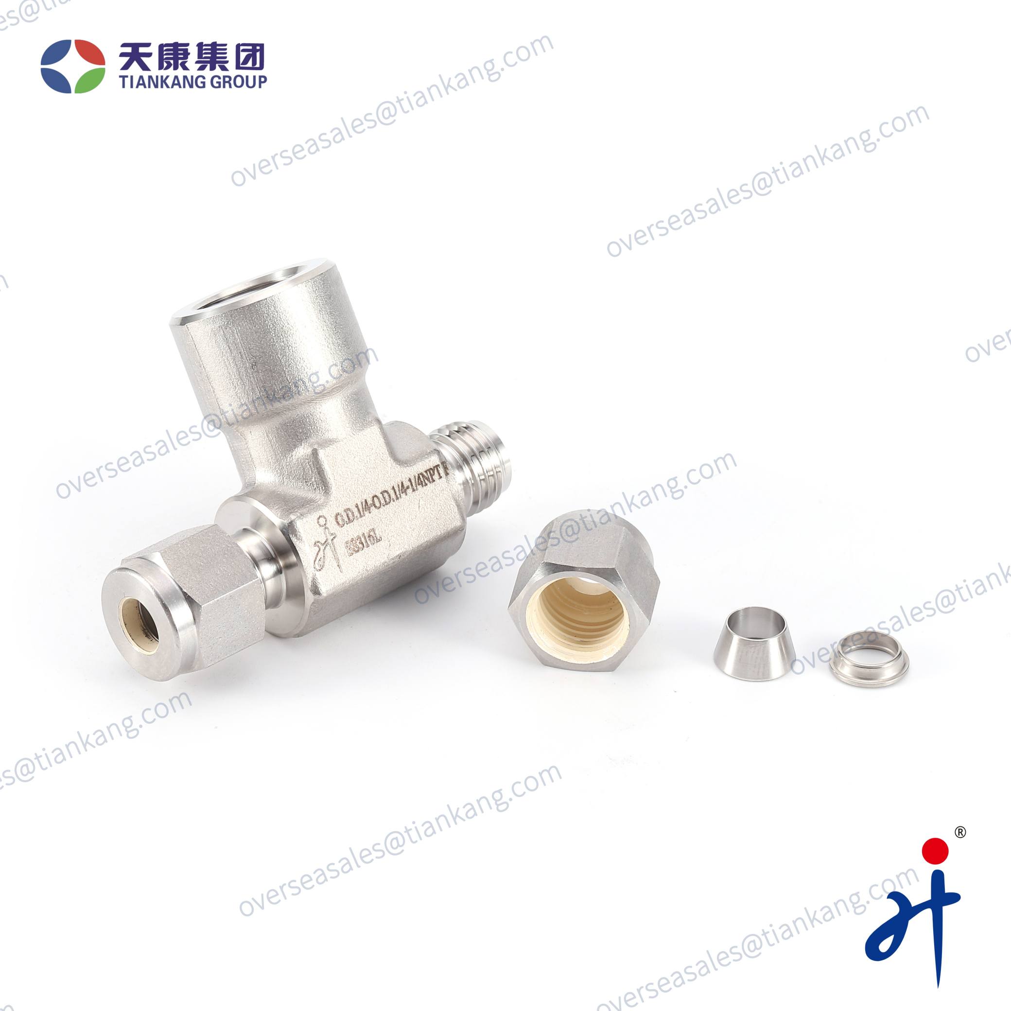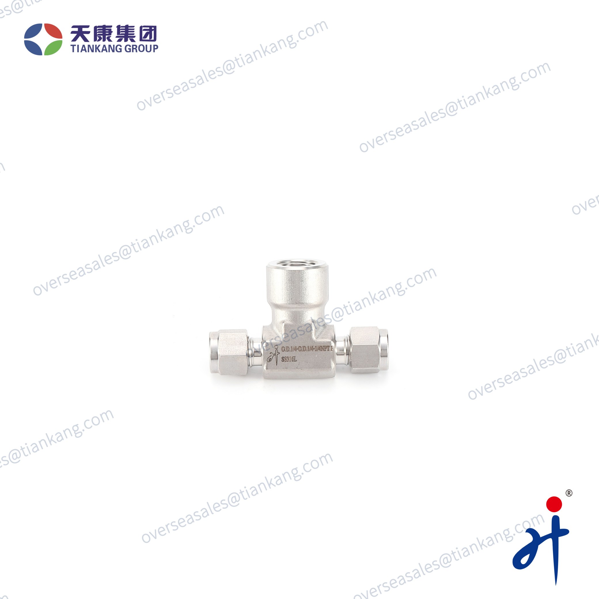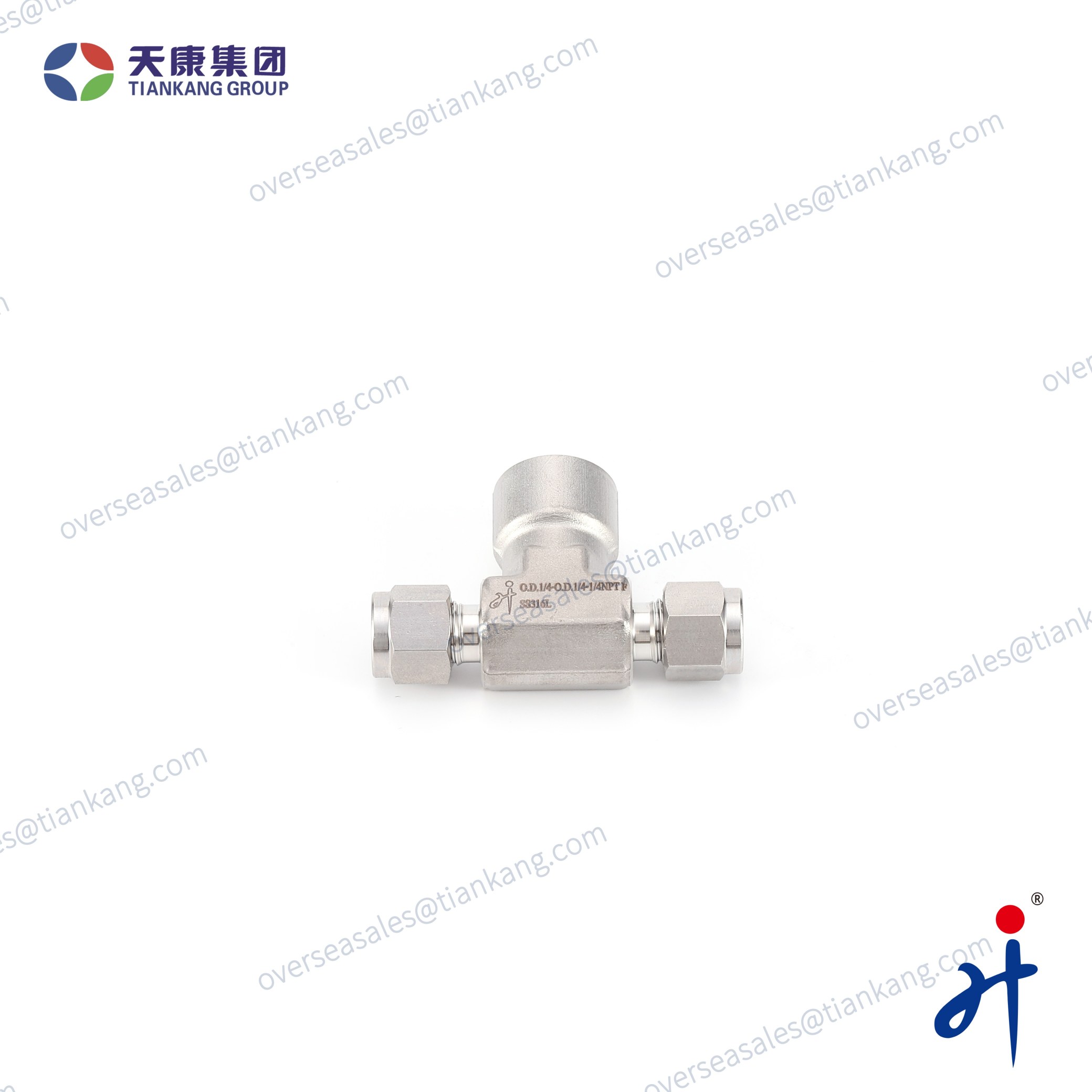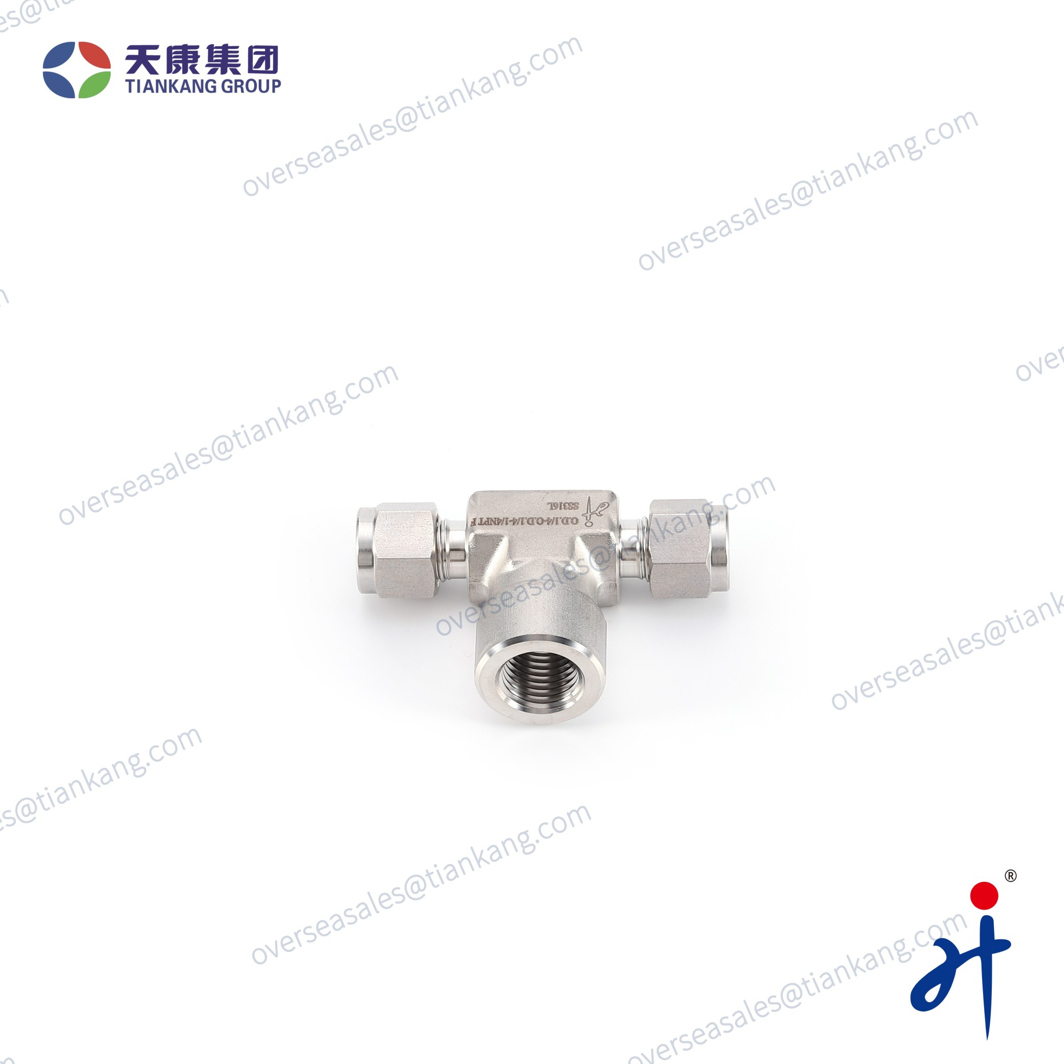 وصلات أنابيب تيانكانغ هونغجي، المصنوعة من الفولاذ المقاوم للصدأ، والمُصنوعة من فرع أنثوي، تُستخدم لتوصيل ثلاثة أنابيب معًا. تتميز هذه الوصلات بوصلات ضغط على طرفيها، مع إمكانية توصيلها بخيوط في المنتصف، وتُستخدم غالبًا في أنظمة توزيع السوائل والغازات وغيرها من الوسائط. يشتهر هذا النوع من الوصلات بمقاومته للتآكل ومتانته العالية، ويُستخدم على نطاق واسع في صناعات مثل نقل البترول والكيماويات والغاز، بالإضافة إلى تجهيزات المختبرات.