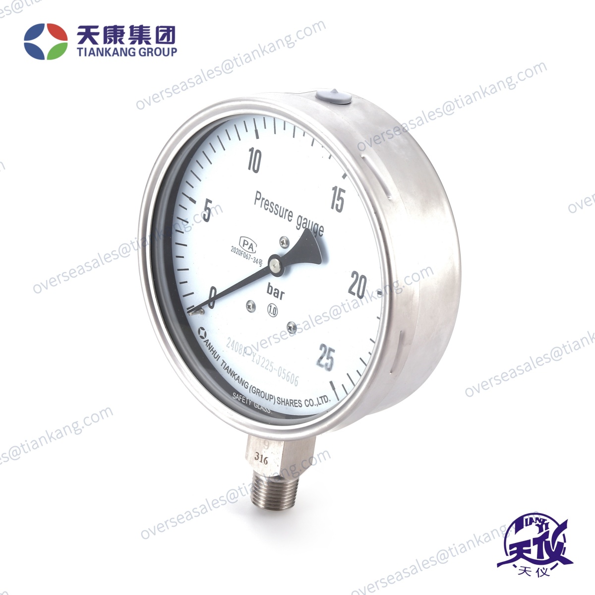 تُستخدم مقاييس ضغط تيانكانغ المصنوعة من الفولاذ المقاوم للصدأ على نطاق واسع في مختلف القطاعات الصناعية، بما في ذلك البترول، والكيماويات، والمعادن، والصناعات الخفيفة، والألياف الكيميائية. تقيس مقاييس ضغط تيانكانغ المصنوعة من الفولاذ المقاوم للصدأ ضغط المواد شديدة التآكل، وهي مناسبة للاستخدام في بيئات ذات اهتزازات شديدة وظروف عمل قاسية. تتميز مقاييس ضغط تيانكانغ المصنوعة من الفولاذ المقاوم للصدأ بمقاومة عالية للتآكل، ودقة عالية، ومقاومة ممتازة للاهتزاز.
