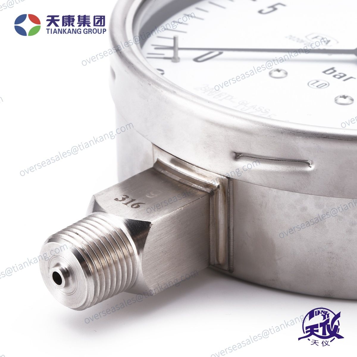 تم تصميم مقياس الضغط المباشر الملولب المصنوع من الفولاذ المقاوم للصدأ من شركة Tiankangلقياس ضغط السوائل أو الغازات ويستخدم على نطاق واسعفي صناعات مثل الكيماويات والبترول والأغذية والأدوية. مصنوع من الفولاذ المقاوم للصدأ عالي الجودة، عرض مقاومة ممتازة للتآكل ومتانة في درجات الحرارة العالية، مما يضمن الموثوقية حتى في البيئات القاسية وعمر خدمة طويل.